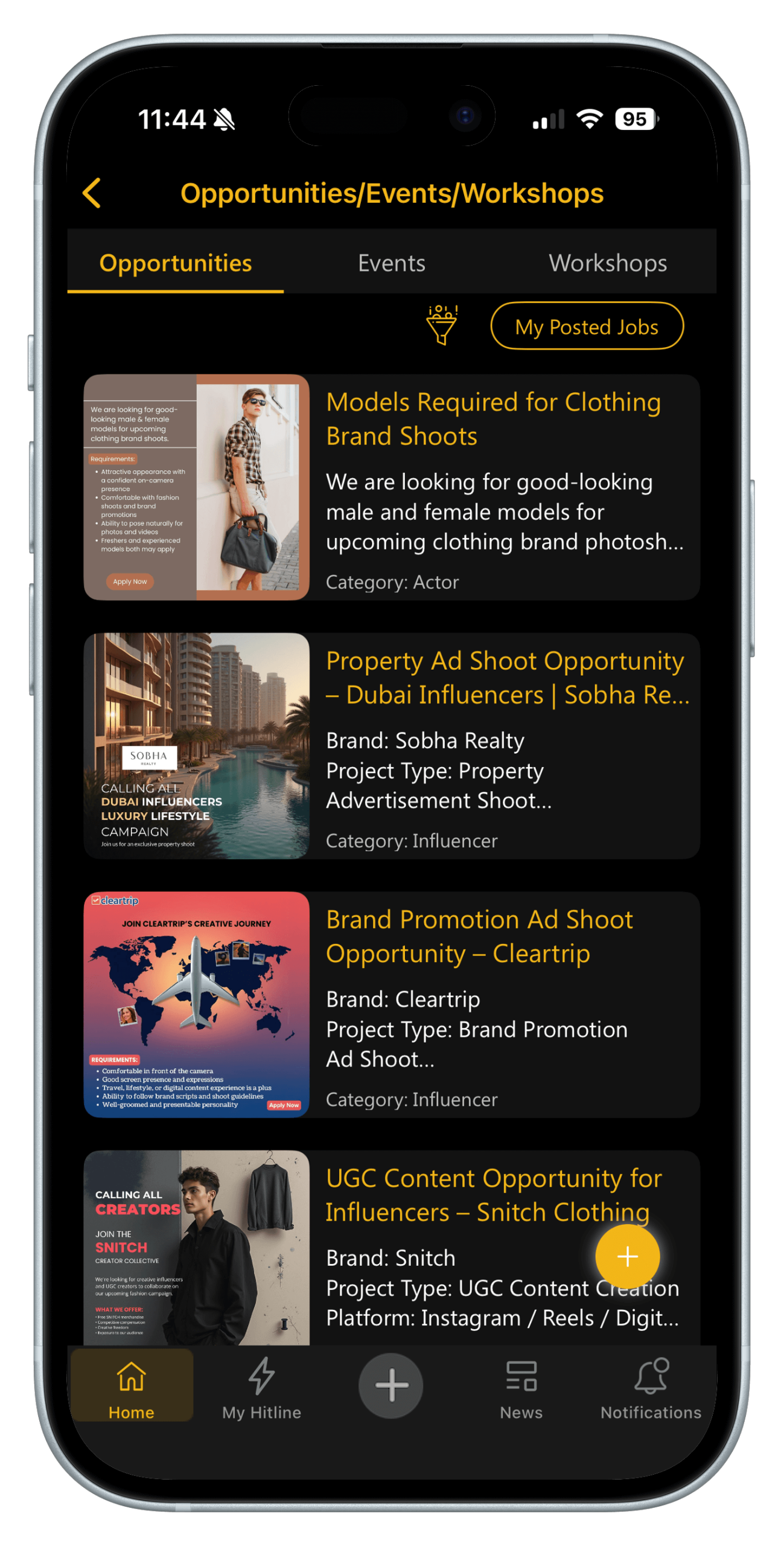 Our AI recommends verified jobs, auditions, and events that suit your talent.