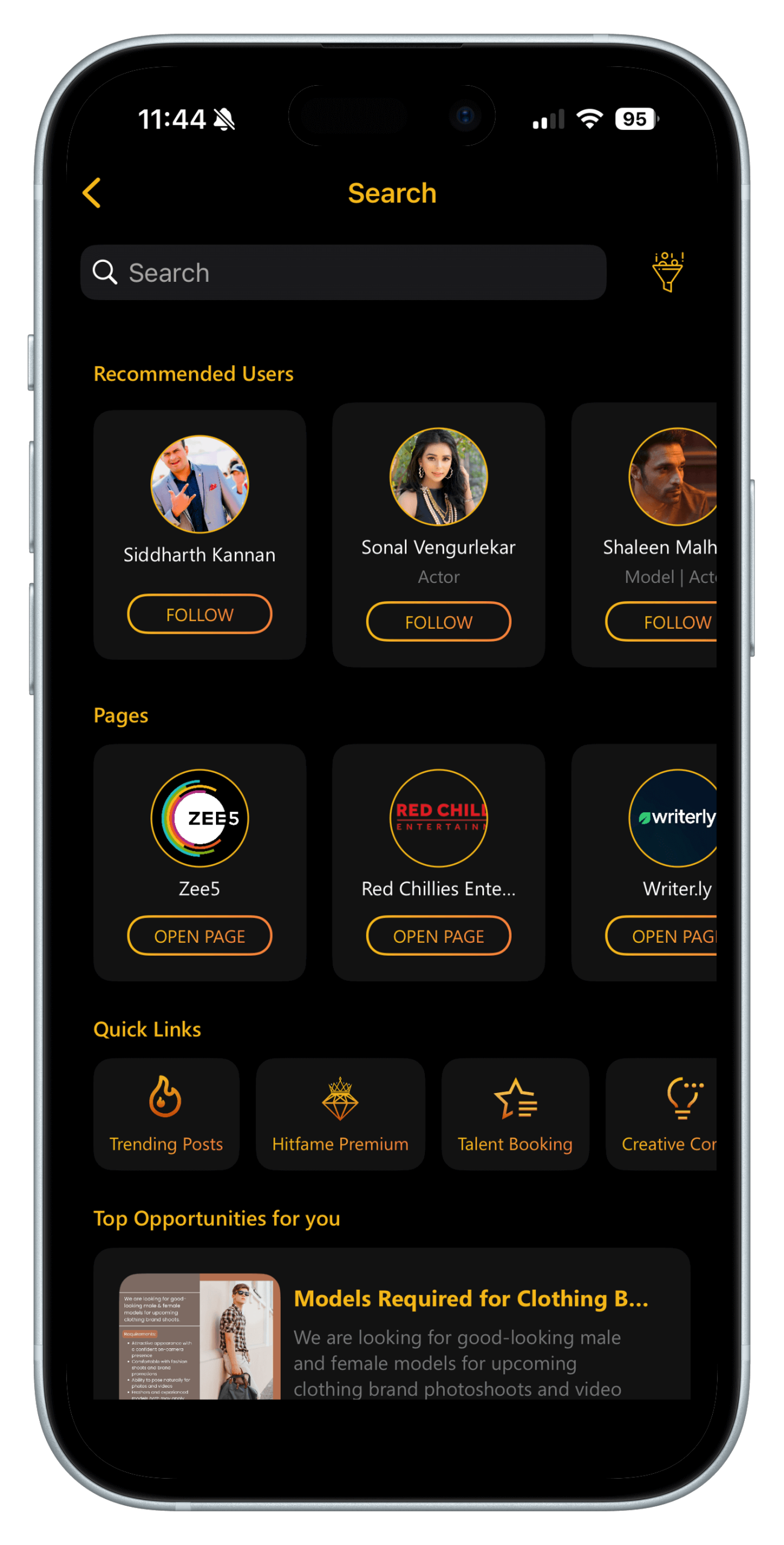 A professional portfolio space to showcase your photos, videos, work, achievements, and links, helping you present your talent clearly and confidently.