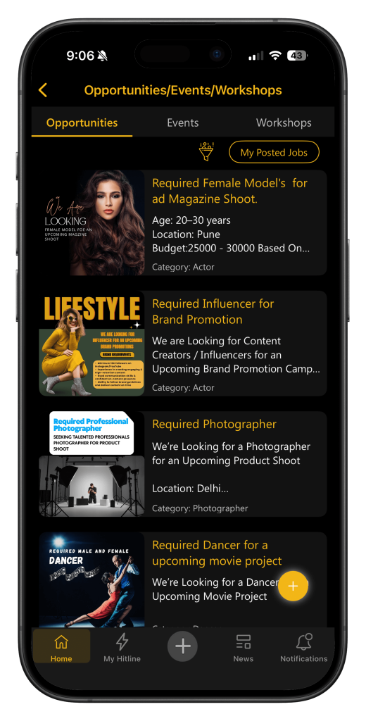 Get seen by casting directors, producers, brands, and organizers who hire through HitFame.