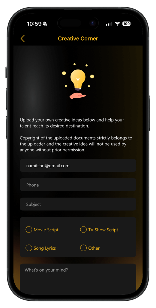 A dedicated space to submit scripts, song lyrics, concepts, and creative ideas so they can reach relevant industry professionals and decision-makers.